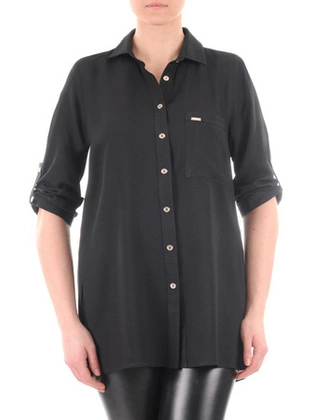 Kreszowana czarna koszula damska plus size z podwijanymi rękawami 38875