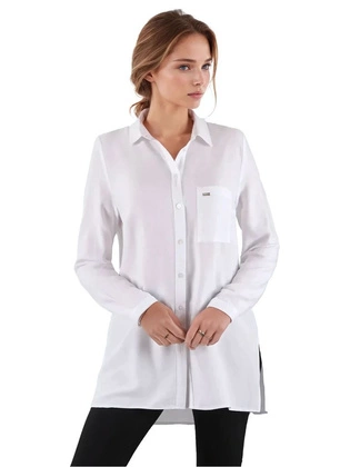 Koszula damska, biała koszula z wiskozy z długimi rękawami, duże rozmiary 39139