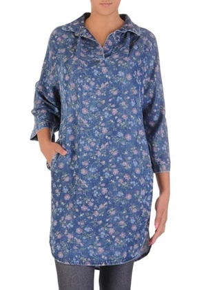 Asymetryczna chabrowa tunika z koronkową aplikacją 29304