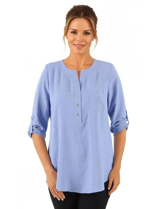 Niebieska bluzka damska z podwijanymi rękawami 37913