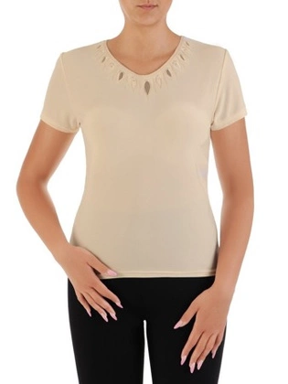 Wyszczuplająca bluzka z dzianiny z ozdobnym dekoltem 22937
