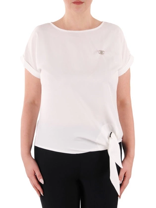 Biała, luźna tunika w fasonie maskującym brzuch 29706