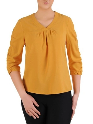 Elegancka tunika damska – wyszczuplający fason z modnym wiązaniem przy dekolcie 39575