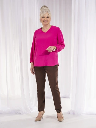 Amarantowa bluzka damska z wytłaczanej tkaniny 33458