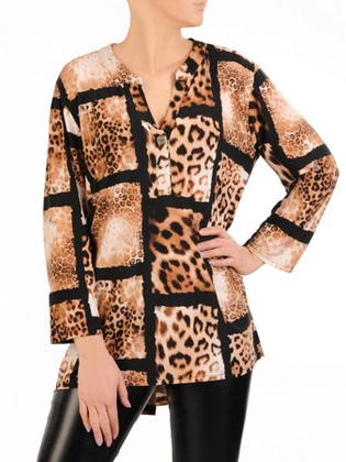 Panterka nie jest zarezerwowana wyłącznie na wieczorne wyjścia. Bluzka w ten wzór, wykonana z wysokiej jakości materiału i o klasycznym kroju, może być świetnym elementem stroju biurowego, jeśli narzucimy na nią gładką marynarkę. Ważne, aby fason był dopasowany do sylwetki – w naszej ofercie znajdziesz modele, które subtelnie maskują niedoskonałości, jednocześnie eksponując atuty figury. To dowód na to, że moda może być sprzymierzeńcem kobiety w każdym wieku.