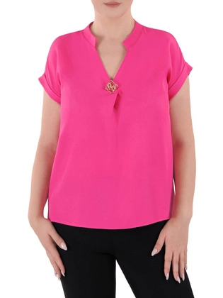 Amarantowa bluzka damska z ozdobna broszką 38424