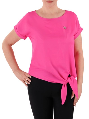 Amarantowa bluzka damska z ozdobnym wiązaniem w pasie 38428