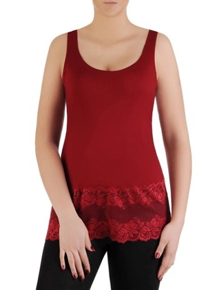 Czerwona bluzka z ozdobnym wycięciem przy dekolcie 33363