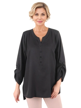 Czarna bluzka damska z wiskozy na wiosnę i lato – przewiewna, lekka, z ozdobnym dekoltem 39689
