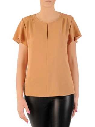 Beżowa bluzka damska z krótkim rękawkiem 38276