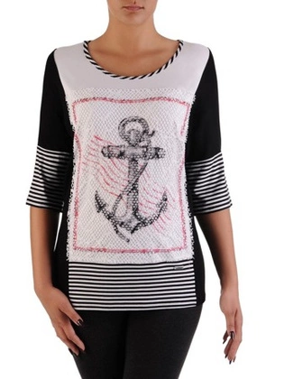 Dzianinowa bluzka wykończona siateczką Karmelita II