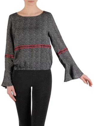 Czarna bluzka z ozdobnym wycięciem przy dekolcie 33367