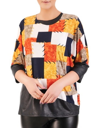 Wzorzysta tunika z ozdobną broszką 16103.