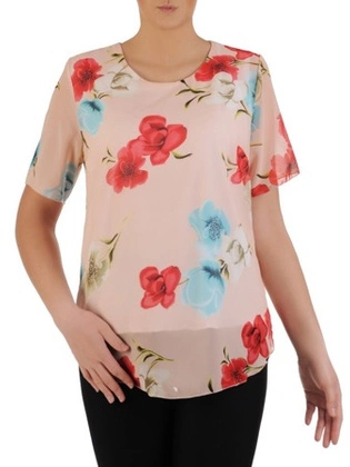 Beżowa bluzka z ozdobnym wycięciem przy dekolcie 33368