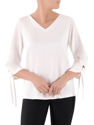 Elegancka bluzka damska z ozdobnymi guzikami przy dekolcie 35760
