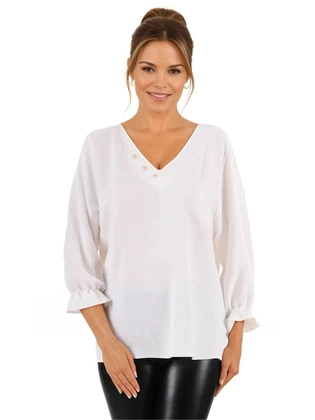 Elegancka bluzka damska z ozdobnymi guzikami przy dekolcie 35927