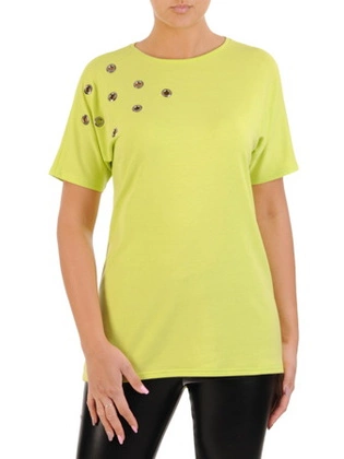 Elegancka bluzka damska z ozdobnymi guzikami przy dekolcie 35761