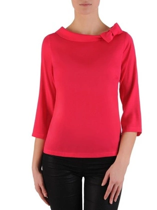 Czerwona bluzka z ozdobnym wycięciem przy dekolcie 33363