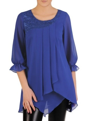 Asymetryczna chabrowa tunika z koronkową aplikacją 29304