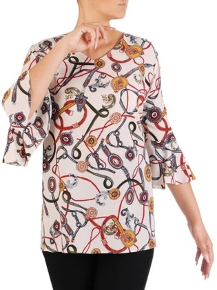 Wzorzysta bluzka z szyfonową wstawką 23300