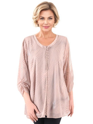 Elegancka tunika damska – wyszczuplający fason z modnym wiązaniem przy dekolcie 39575