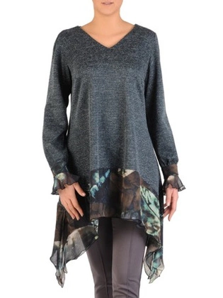Dzianinowa tunika z długim rękawem wykończonym falbanką 28125
