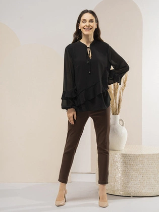 Elegancka tunika damska – wyszczuplający fason z modnym wiązaniem przy dekolcie 39574