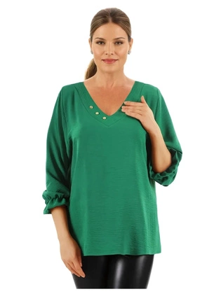 Elegancka bluzka damska z ozdobnymi guzikami przy dekolcie 35759