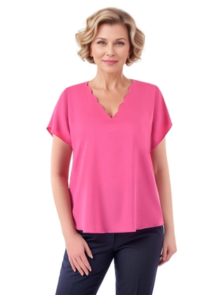 Amarantowa bluzka damska z dekoltem w serek 38420
