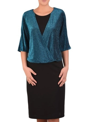 Elegancka sukienka z połyskującym, kopertowym topem 23708
