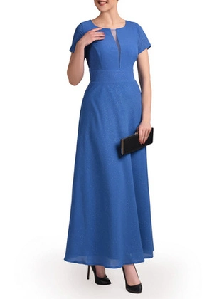 Wieczorowa, kopertowa suknia maxi z połyskującego materiału 34527