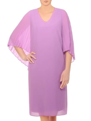 Śliwkowa sukienka wizytowa, kreacja z szyfonową narzutką 23213