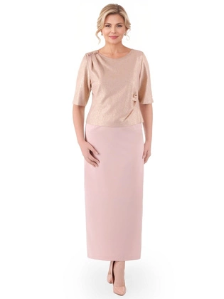 Elegancki komplet damski na wesele, komunię, beżowa, długa spódnica z bluzką 39264