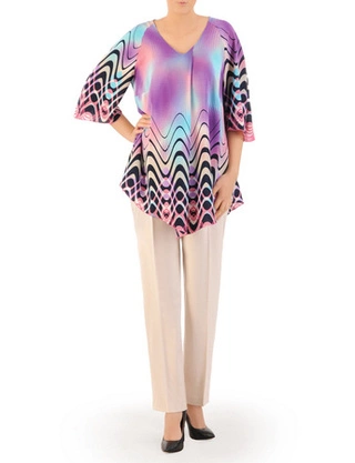 Wyszczuplający komplet damski, luźna tunika ze spodniami w kant 34373