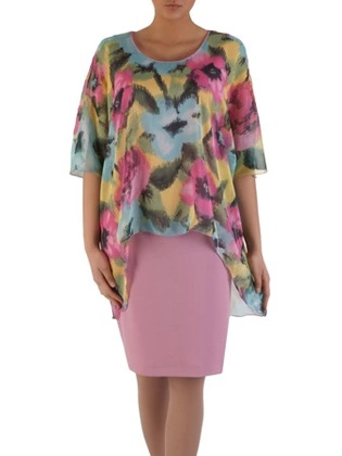 Sukienka wyszczuplająca 2w1 , prosta kreacja z luźną, szyfonową narzutką 15716