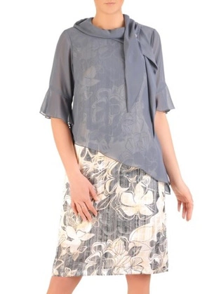 Elegancki komplet damski, połyskująca sukienka z szyfonową bluzką 29608