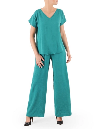 Zielony komplet damski, luźne spodnie z bluzką w dekolt serek 38479
