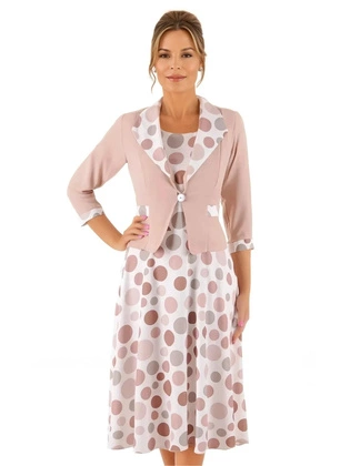 Komplet damski na wesele, komunię, elegancka sukienka w groszki z żakietem, garsonka plus size 38252