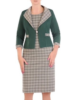 Elegancki komplet, sukienka w pepitkę z gładkim żakietem 34250
