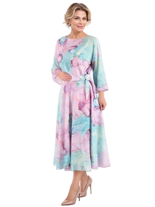 Elegancki komplet damski na wesele i komunię – rozkloszowana sukienka w kwiaty z gładkim żakietem 39848