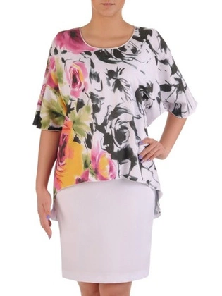 Prosta sukienka z wzorzystą narzutką, elegancki komplet wizytowy 20118