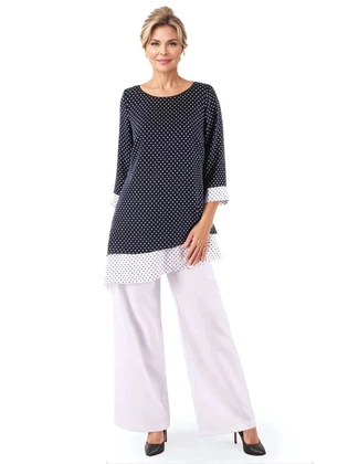 Komplet damski elegancki, asymetryczna tunika w groszki z luźnymi spodniami 38247
