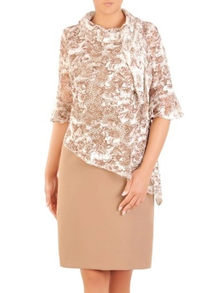 Prosta sukienka z wzorzystą narzutką, elegancki komplet wizytowy 20118