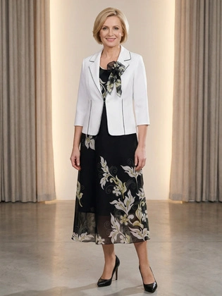 Elegancka garsonka damska na wesele i komunię – wyszczuplający komplet z sukienką i płaszczem wizytowym 39955