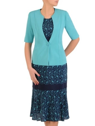 Kostium damski, żakardowa sukienka z gładkim żakietem 26234
