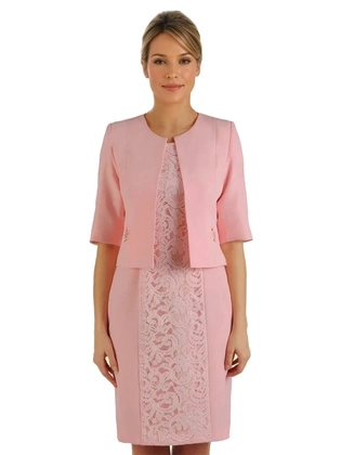 Komplet damski na wesele, komunię, elegancka sukienka z pudrowym żakietem 39281