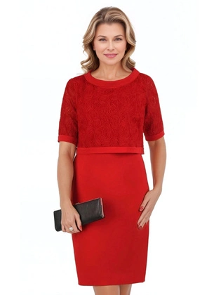 Kostium damski, czerwona sukienka z krótkim żakietem 20911.