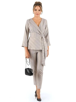 Komplet damski, elegancki zestaw wizytowy, kopertowa tunika ze spodniami 39171