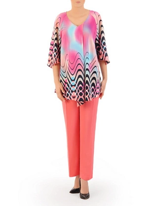 Wyszczuplający komplet damski, luźna tunika ze spodniami w kant 31889