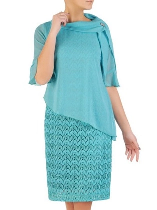 Elegancki komplet damski, miętowa sukienka z szyfonową bluzką 28553